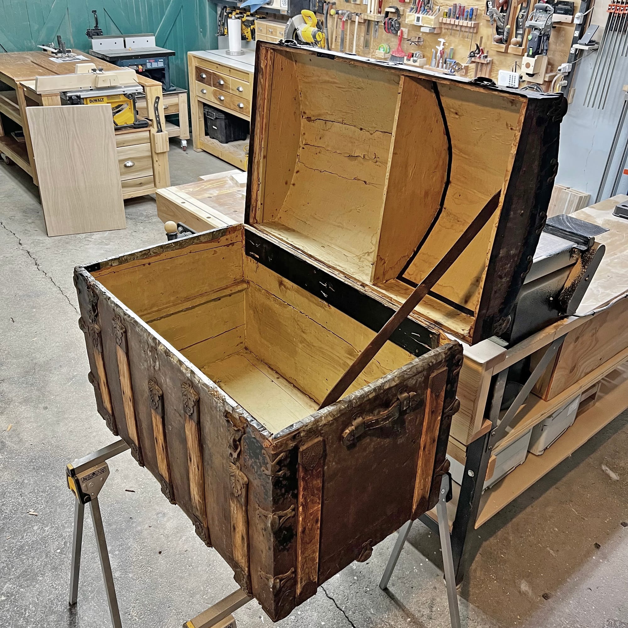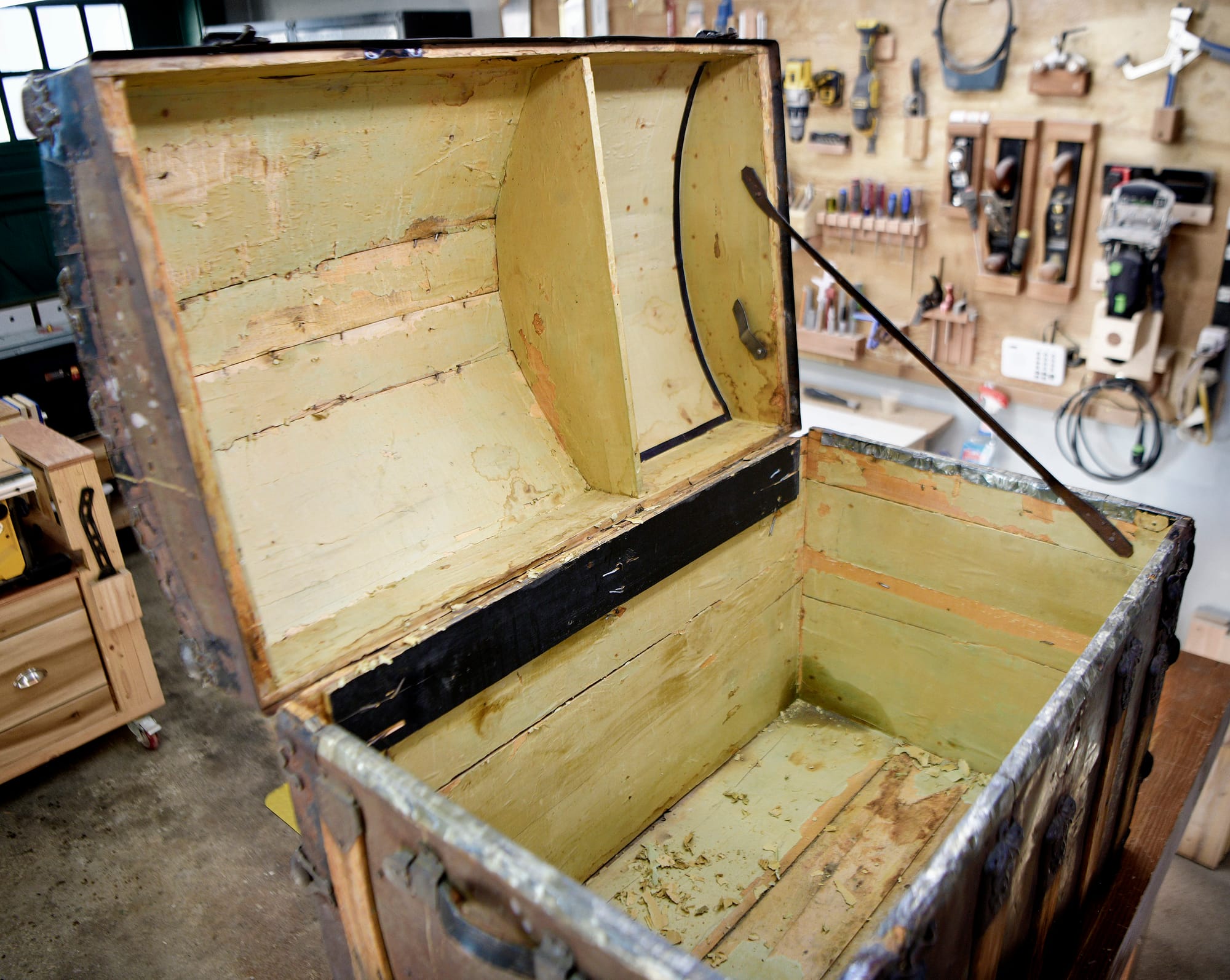 - Then it will be time to deal with the interior: structural repairs, cleaning, scraping, and sanding, and then deciding on how to finish up the interior so that it smells and feels nice for storing blankets and quilts.