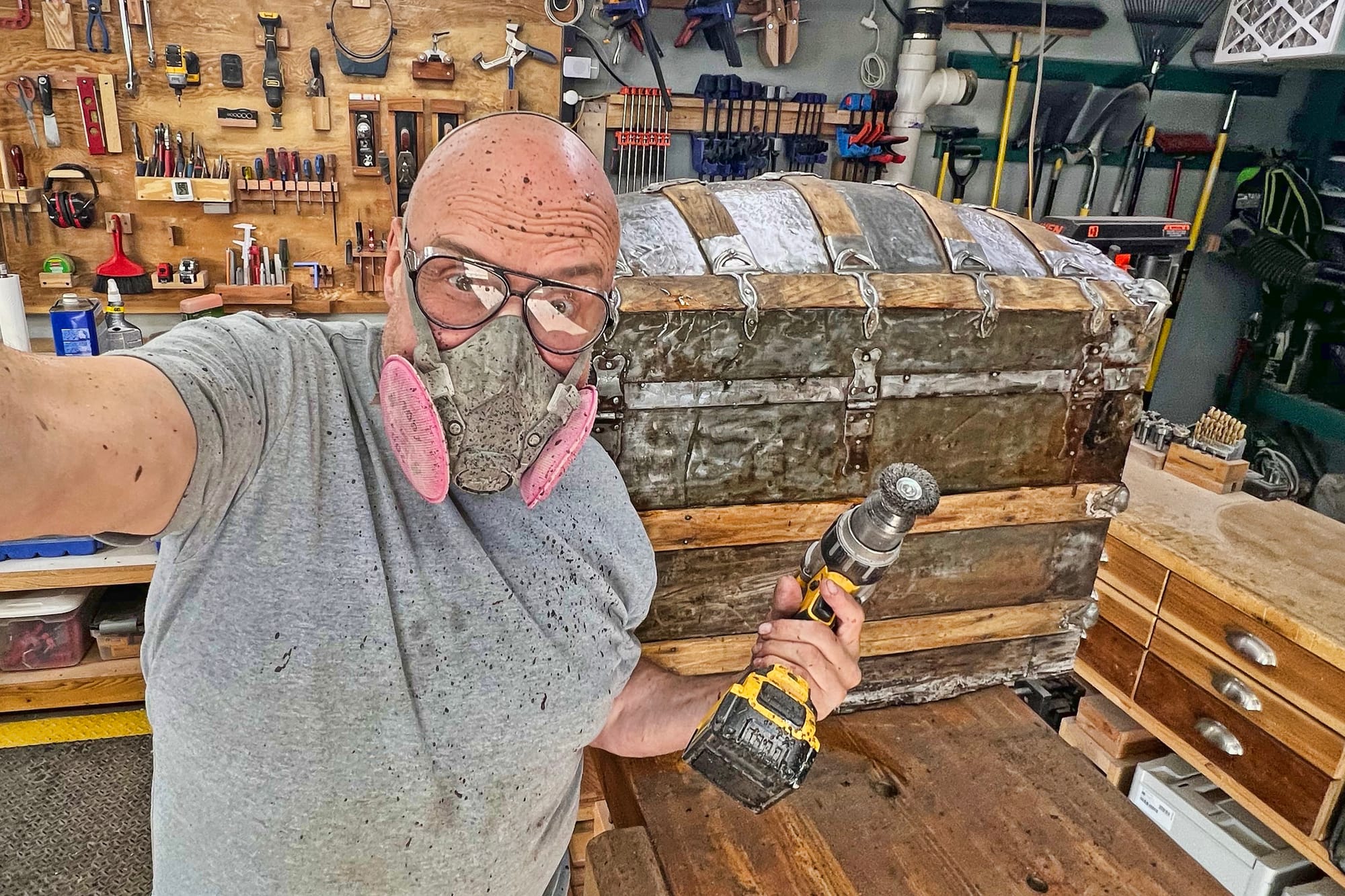 - First do all the messy exterior cleanup, which involves a variety of harsh chemicals for removing rust and paint and is making a big mess of my workshop.