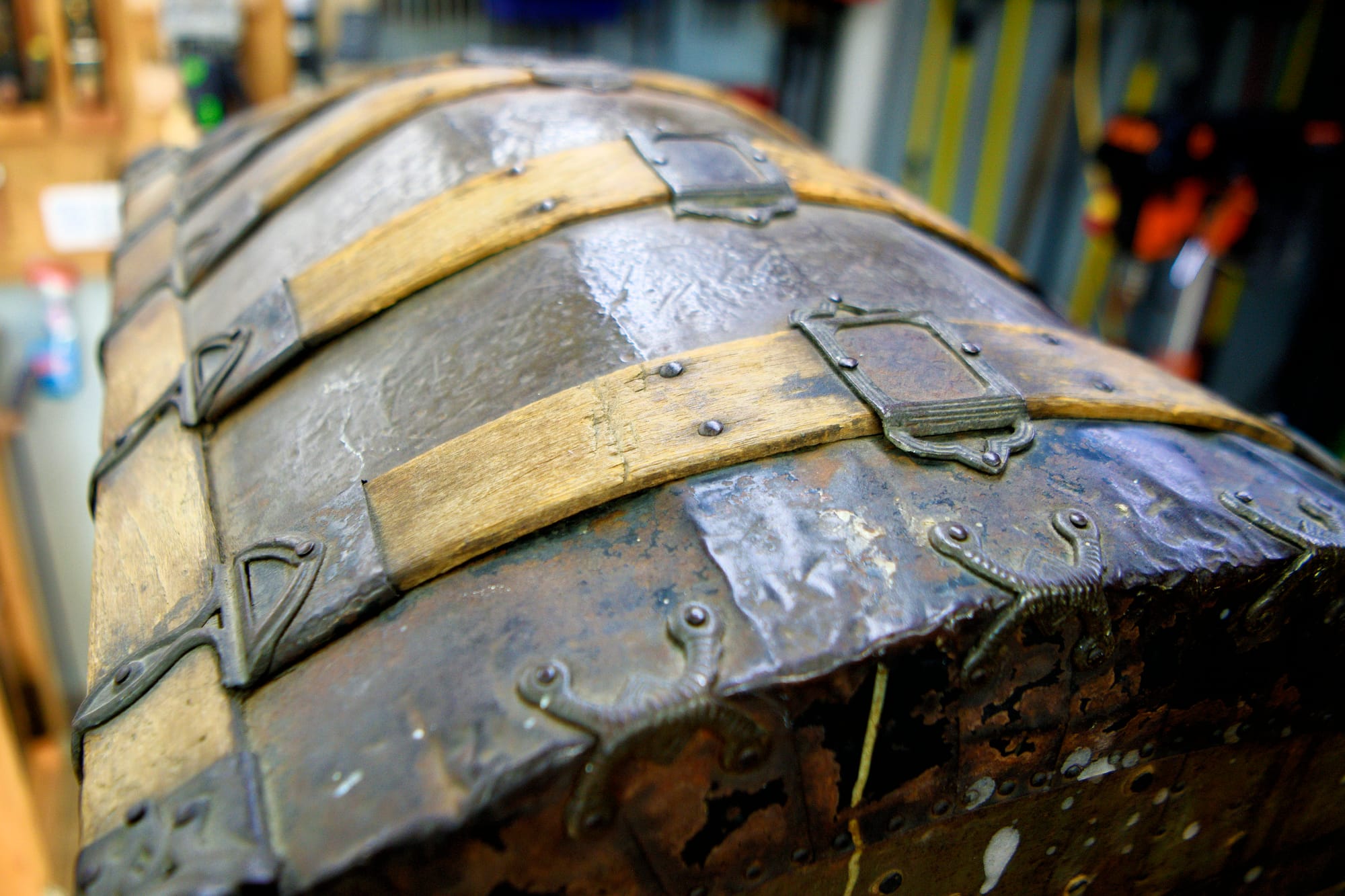 - Some trunks have identifying features that show whether they were originally intended for steamship travel, railroad travel, or stagecoach travel, but this one has none of those details. So it's a general-purpose trunk that could have been used for anything. Based on the number of deep dents and scratches it has, it's clear that it got around a lot before settling down to rust and decay in the basement of an old Craftsman home in Butte, Montana.
