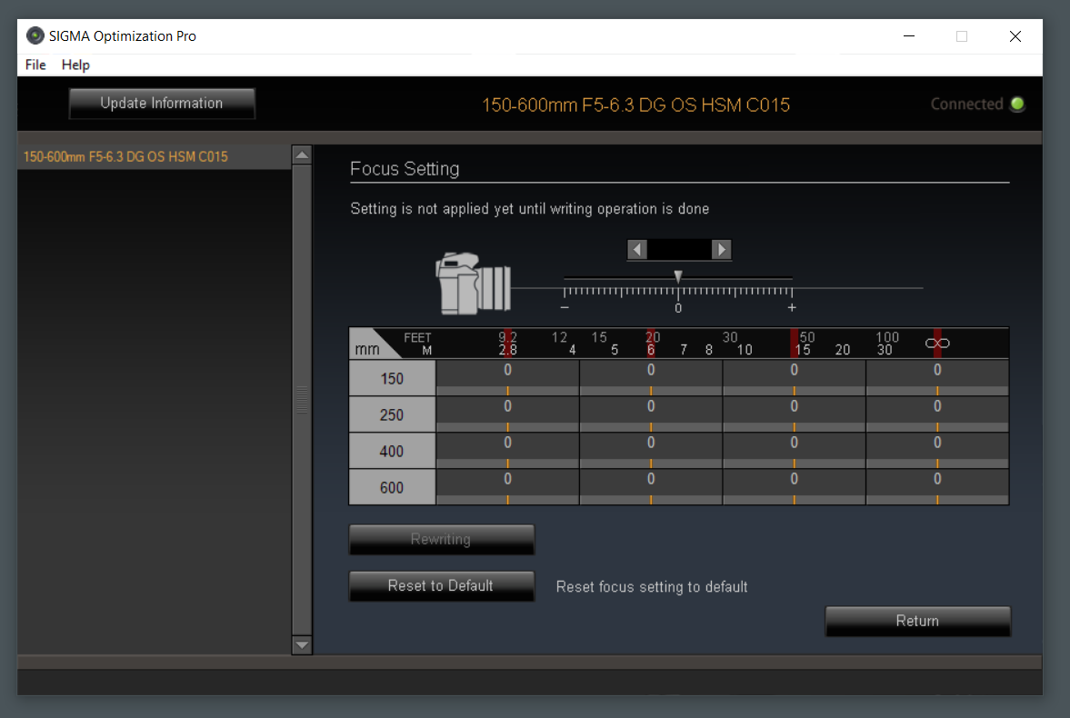 The first step is to download, install, and run the Optimization Pro software. When you launch the program it guides you through connecting the lens and offers to check for firmware upgrades.