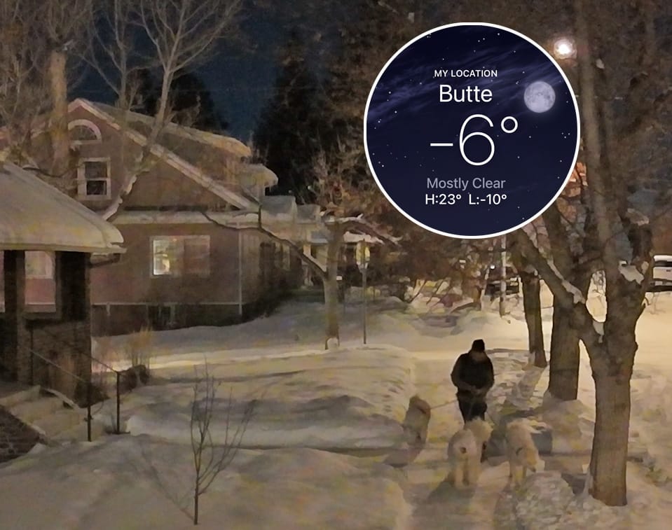 Back in Butte, the February weather made it frustrating to try to find times to practice with the drone. We had plenty of snow, some below-zero days, and also extreme wind at times.