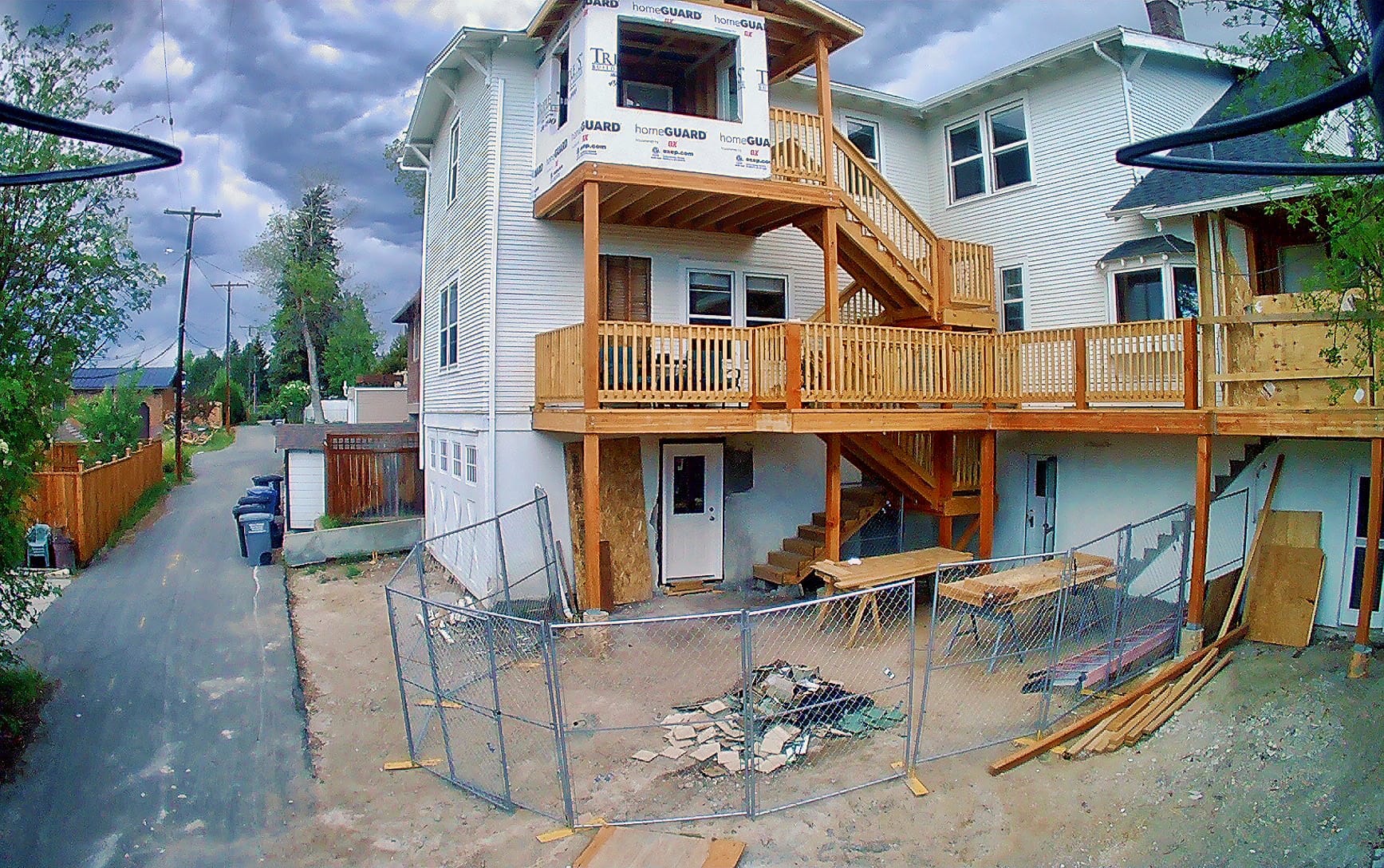 I tried taking some photos of our construction project, but there are so many overhead lines and trees near our house that I found it almost impossible to fly unless there was no wind at all.