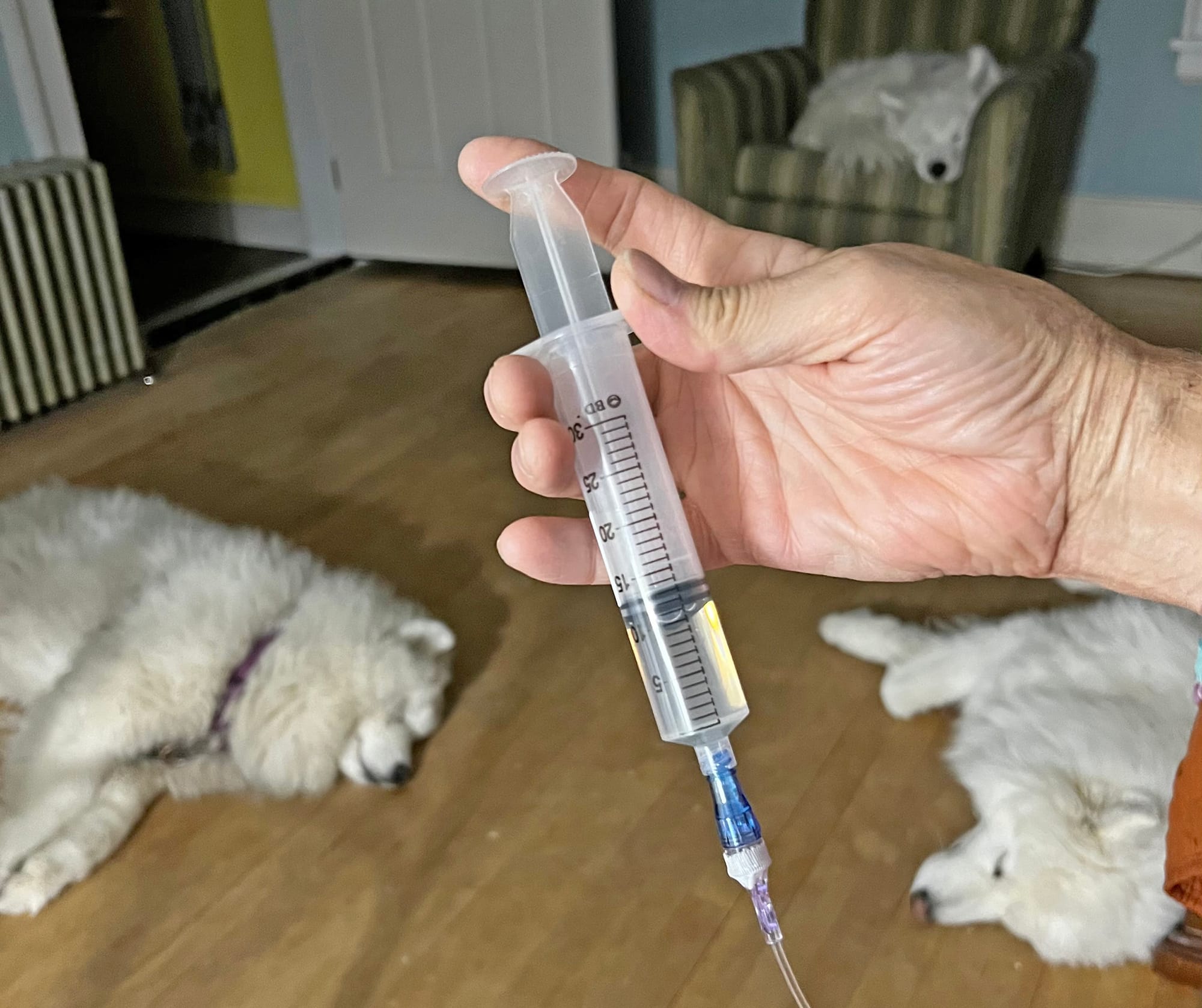 As Dr. Pullman explained to me, the first order of business would be to do whatever it takes to kill any remaining staph cells in my body. He put me on IV antibiotics while I was in the hospital for a week after surgery, and then I went home with a PICC line installed in my right arm, and for the next 6 weeks I injected myself with antibiotics every 8 hours at 6AM, 2PM, and 10PM. I saw Dr. Pullman and his PA Erin several times during that phase, and every week their team drew blood for labs to monitor how things were going.