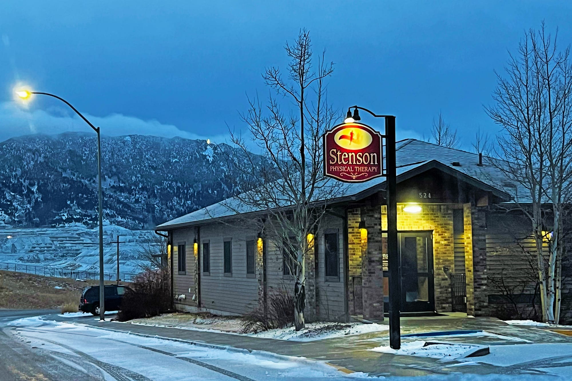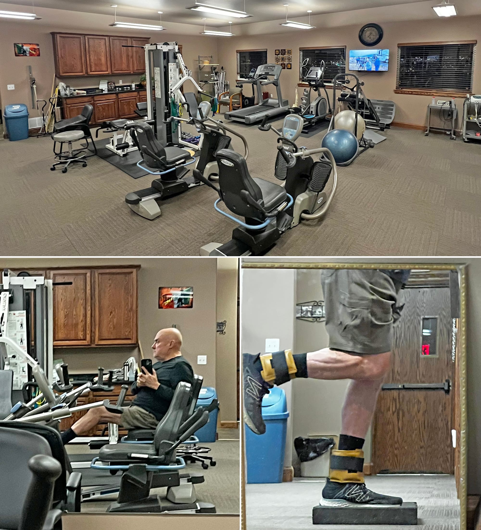 After looking into a few options and talking to a few people, I decided to go with Kevin Stenson, a PT who has been working in Butte for 25 years. His clinic, opened in 2009, is on the east side of Uptown Butte near the massive Belmont Mine headframe, with views of the Highland Mountains from the stationary bikes and weight machines.