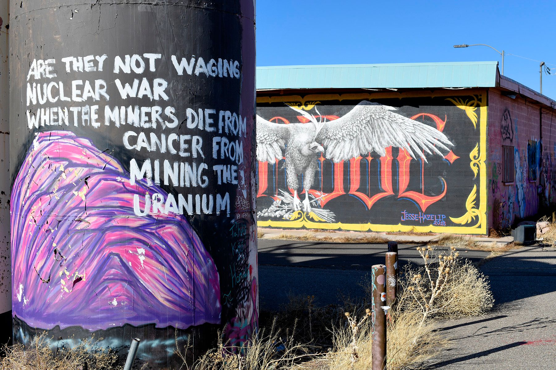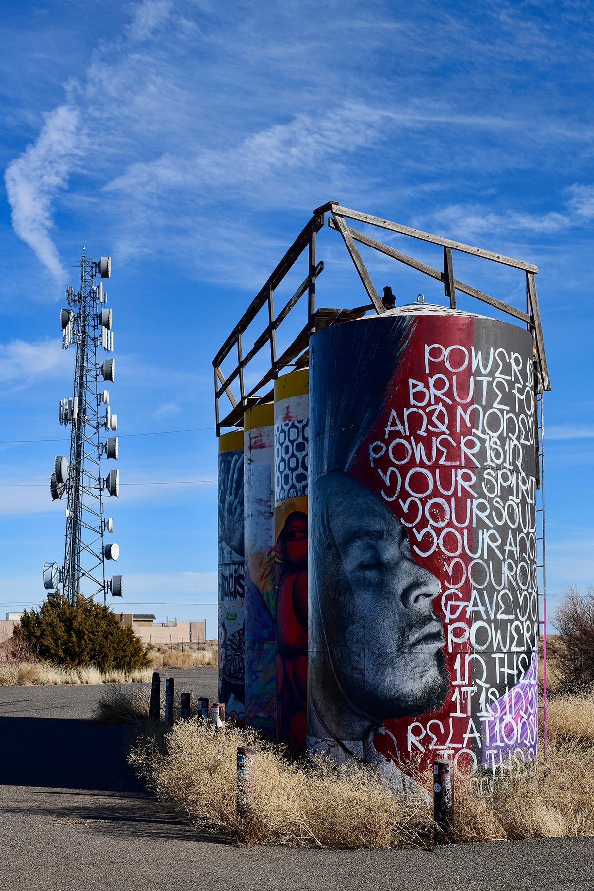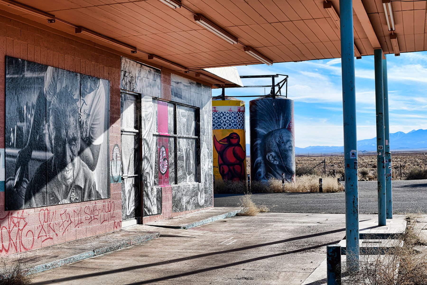 Chip Thomas's Painted Desert Project connects public artists with communities through mural opportunities on the Navajo Nation. Some of those murals are in the tiny town of Gray Mountain, where we stopped for gas.