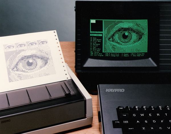 To users of modern personal computers, there’s nothing particularly impressive about that photo, but for Kaypro users in the early 80s this was a striking image. No other software had shown off the graphics capability of the Kaypro hardware in this way, and the fact the same image was printing on a printer (the ubiquitous HP Thinkjet 2225C) was also something new in the CP/M world.