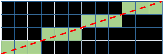 Enter the Bresenham line-drawing algorithm, which defines a method for drawing a straight line between two points in a grid through the use of integer arithmetic and bit shifting: no floating-point calculations required. The Bresenham algorithm is a very efficient method for answering the question of which pixels should be included in an approximation of a straight line, as shown here: