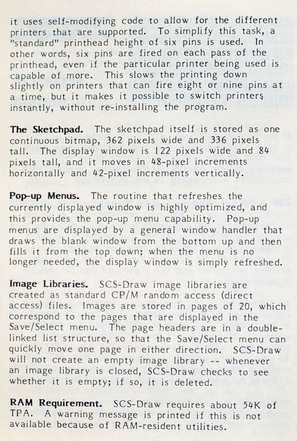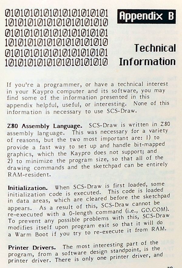 The “Technical Information” appendix of the user guide contained some information about how SCS-Draw’s print drivers worked, as well as a few other things that are sort of interesting to me as historical footnotes: