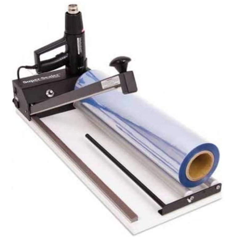 Back then, to sell software you had to have a fax machine for receiving orders and a postage meter for shipping packages, as well as a shrinkwrap machine like the one shown here, for sealing up the plastic cases that each held a disk, a registration card, and a user manual. Shrinkwrap machines were fun – you could shrinkwrap the boots onto your feet and run around in the snow, for example.