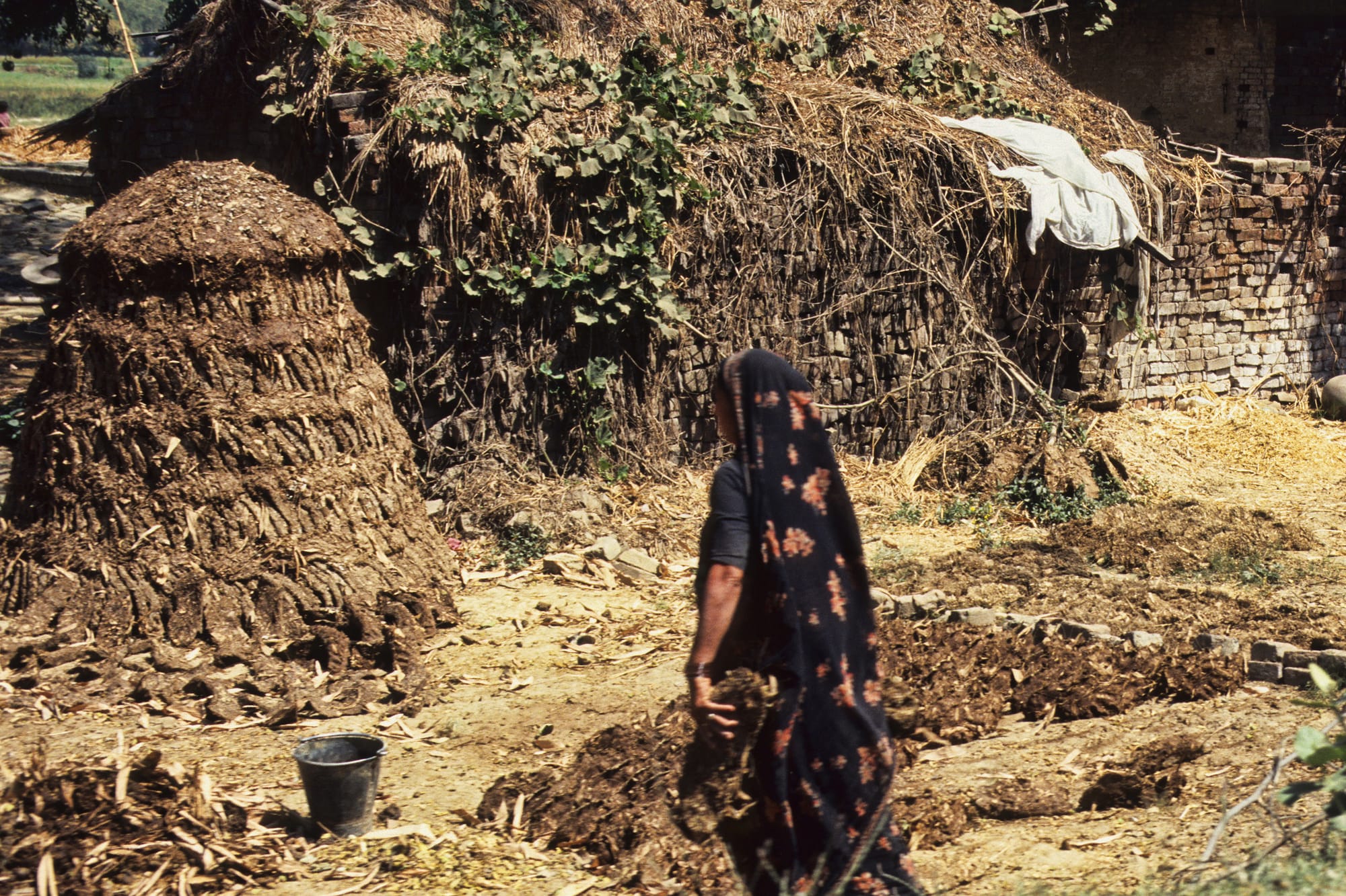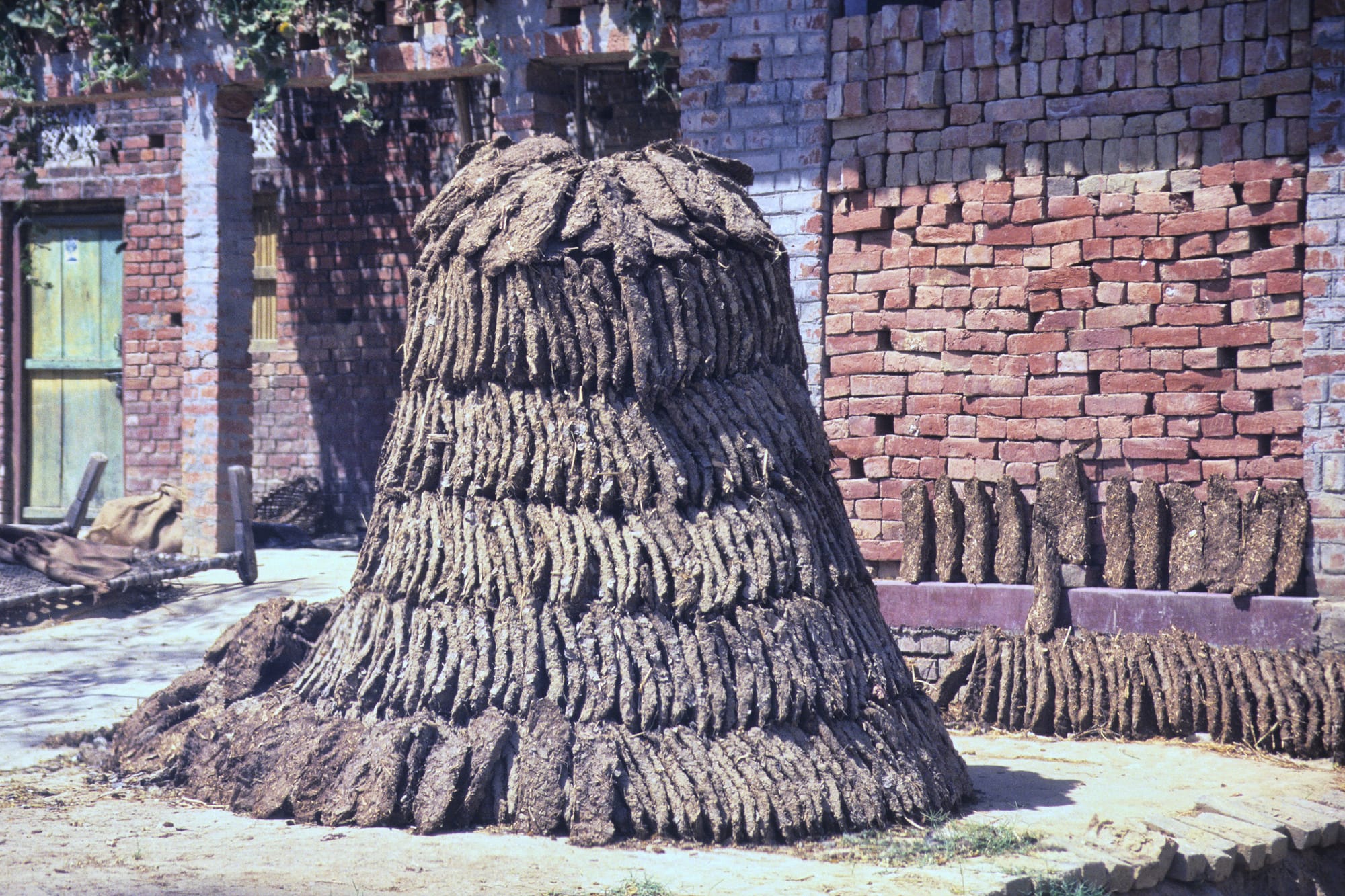 This enterprising family in Agra sells dried cow dung for use in heating and cooking fires. They collect cowpies off the streets, mold it into flat patties of a consistent size and shape, then dry them along a south-facing brick wall before stacking them in big eye-catching mounds.
