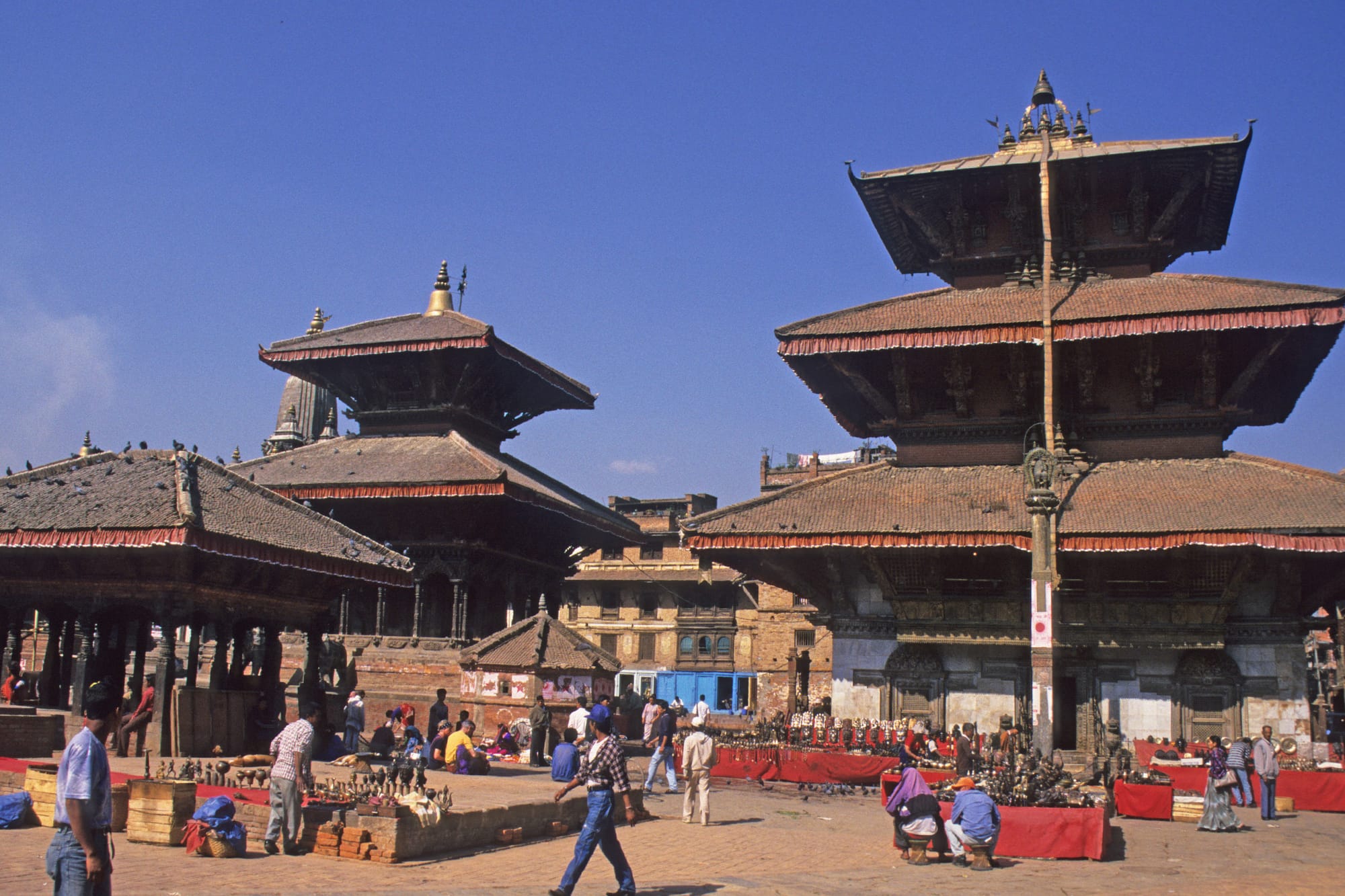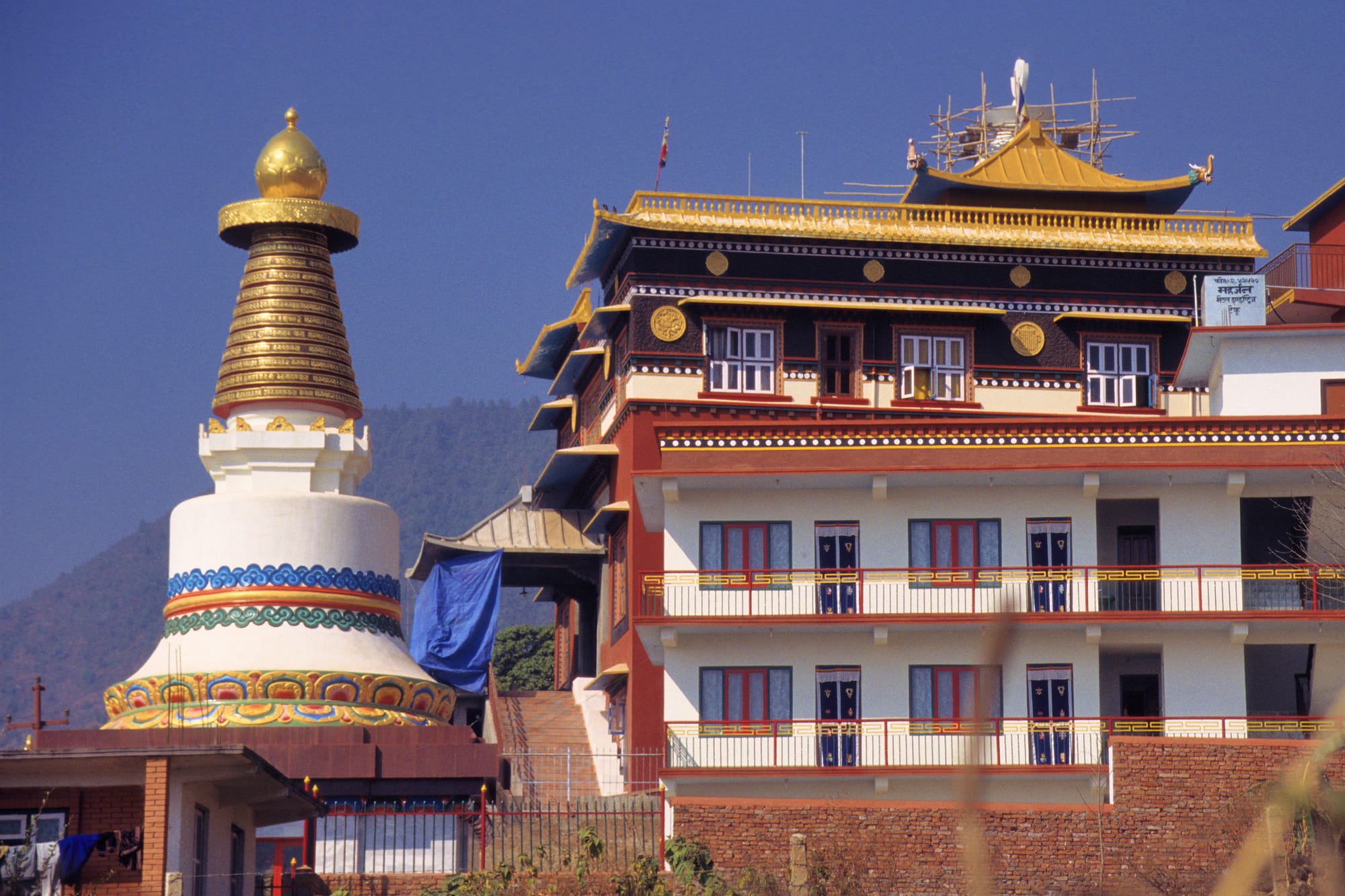 We flew back to crowded, polluted, crazy Kathmandu today, and we're back at Kathmandu Guest House. I watched a guy setting up a big stereo outdoors next door (from our balcony), and several people were stringing lights up and down that building and setting up rows of chairs. Now I notice that one of the employees here has printed out an announcement that there's going to be a wedding next door, and apologizing and asking the guests to "beer (sic) with us through the noise." I'm going to do just that right now -- Mom's waiting at a table on the patio.