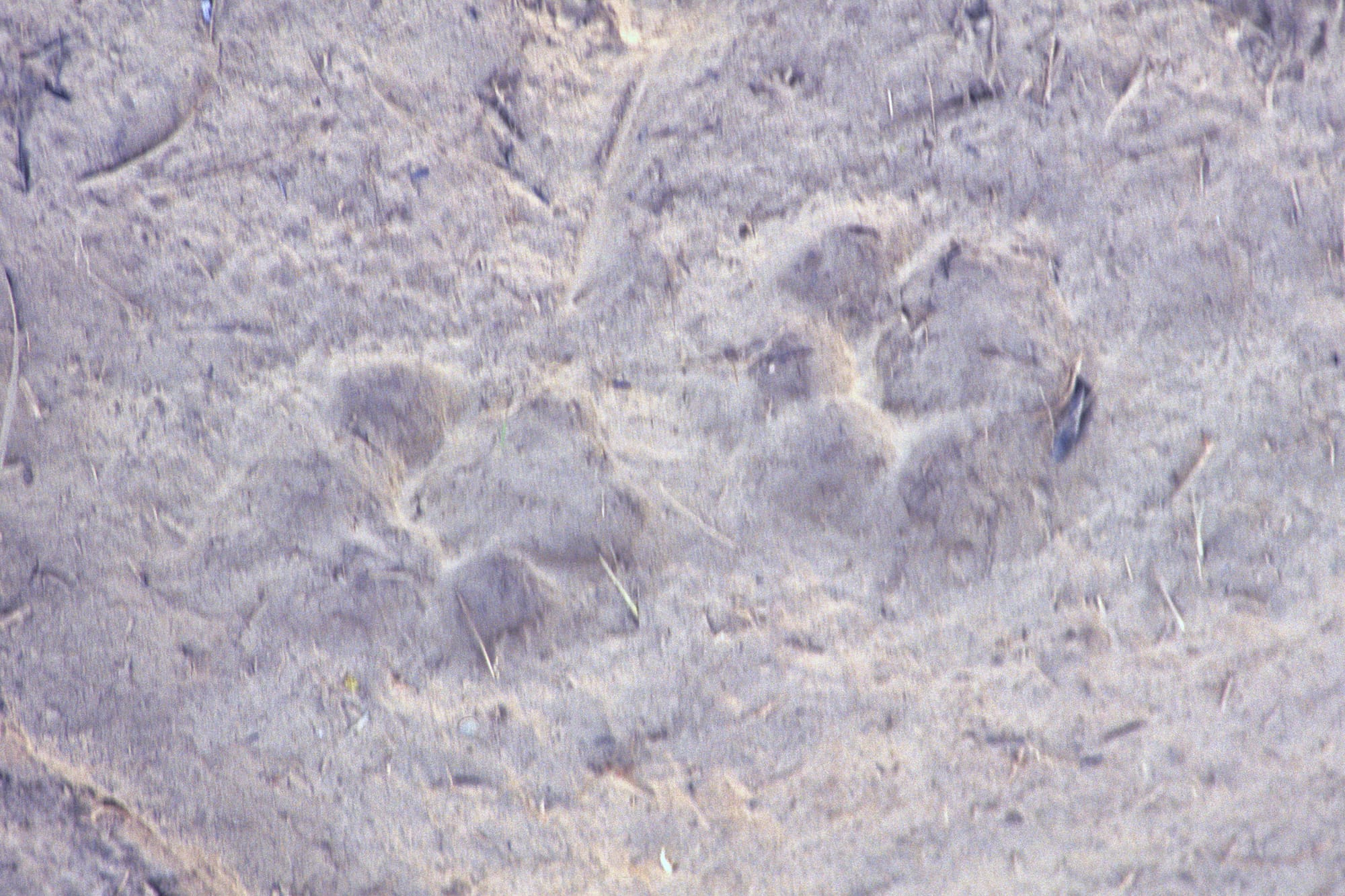 That first safari, we saw several rhinos (prehistoric and awesome - hinged parts all over the place) and lots of deer (several different types), a few wild boars (very fast when spooked), and numerous monkeys, birds, a few crocodiles, etc. And we saw some huge perfectly formed tiger footprints in a sandy trail, but no tiger. Tiger sightings are pretty rare, and there are about 40 adult tigers in the vicinity of Tiger Tops. The best guides know every one of them by their markings and footprints, and can look at tracks and say which tiger went by and how many hours ago. They read things like the amount of degradation of the edges of the footprint, whether it has a texture that indicates it was there before the morning's dew, and many other details.