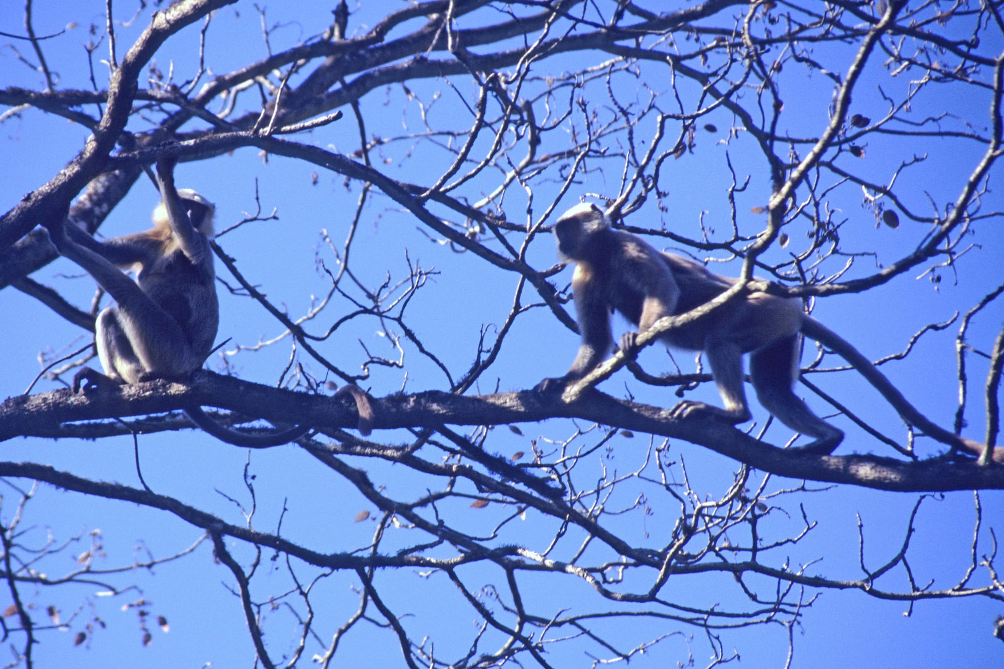 After dinner at the communal tent, we retired to our tent, situated on the edge of a bluff overlooking the river and flood plains. A group of deer, including a huge stag, grazed 50 feet below, while huge brush fires lit up the sky in the distance (the natives set them to burn off the grass and grow a new crop for thatching huts and so on). Many types of birds, monkeys, and other animals made weird sounds late into the night. Very peaceful, and a dramatic change of pace from Kathmandu.