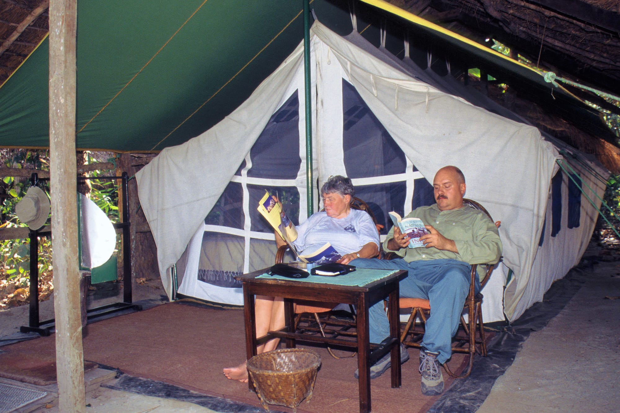 We spent the first night in Tiger Tops Tent Camp, which is at a remote location -- you have to walk the final mile through the jungle to get there. We had a tent with a small bathroom in a bamboo hut out back (actual shower and toilet), and of the 12 tents in the camp only four were occupied that night so it was very peaceful.