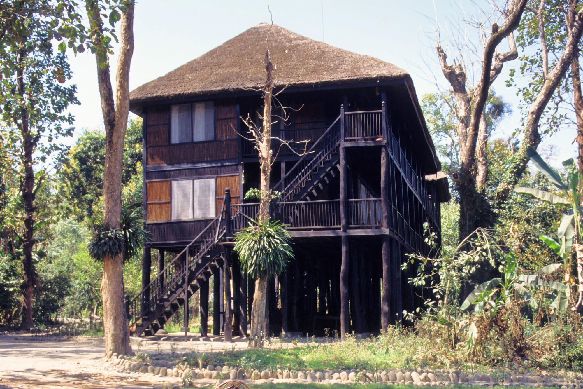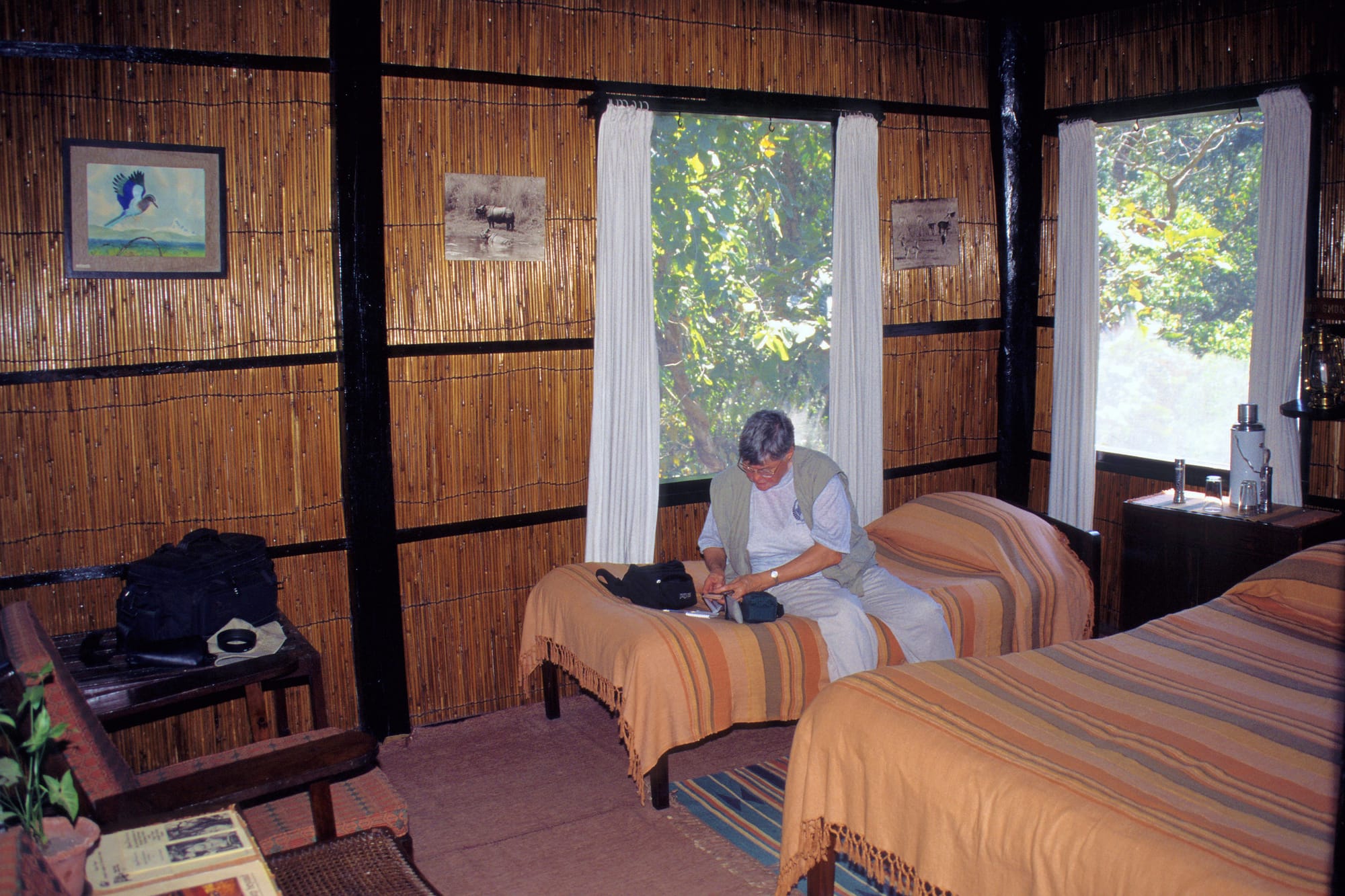 Tiger Tops was by far the most expensive place we stayed on this trip. We were paying $30-$40 per night at many places we stayed, but at Tiger Tops we paid $300 per night. We had decided that if we were going to see the jungles of Royal Chitwan National Park, where dangers range from malaria and parasitic infections to tigers, rhinoceroses, and crocodiles, we would pay for the safest possible lodging with the most experienced guides. It was a five-star experience all around, well worth the money. For example, I bought a souvenir shirt similar to the uniforms the guides wore, and when the manager of the resort saw that a button had popped off of it, he arranged for a hotel employee to meet me at the bar with a button, needle, and thread, and she sewed a new button on my shirt while I sipped a complimentary beer.