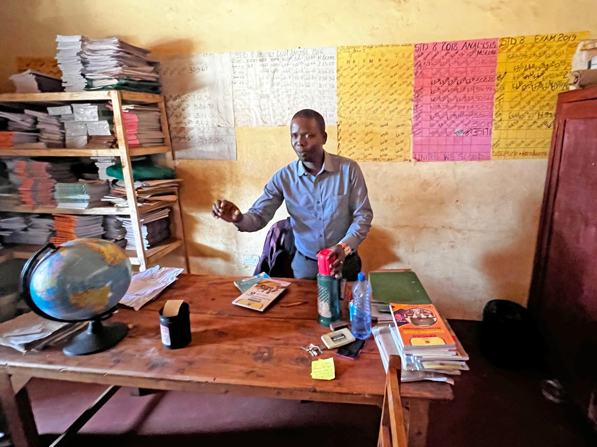The chief came with us while we drove a short distance to the school that three of his kids attend. We met with the administrator, and he showed us around, then we visited a classroom.