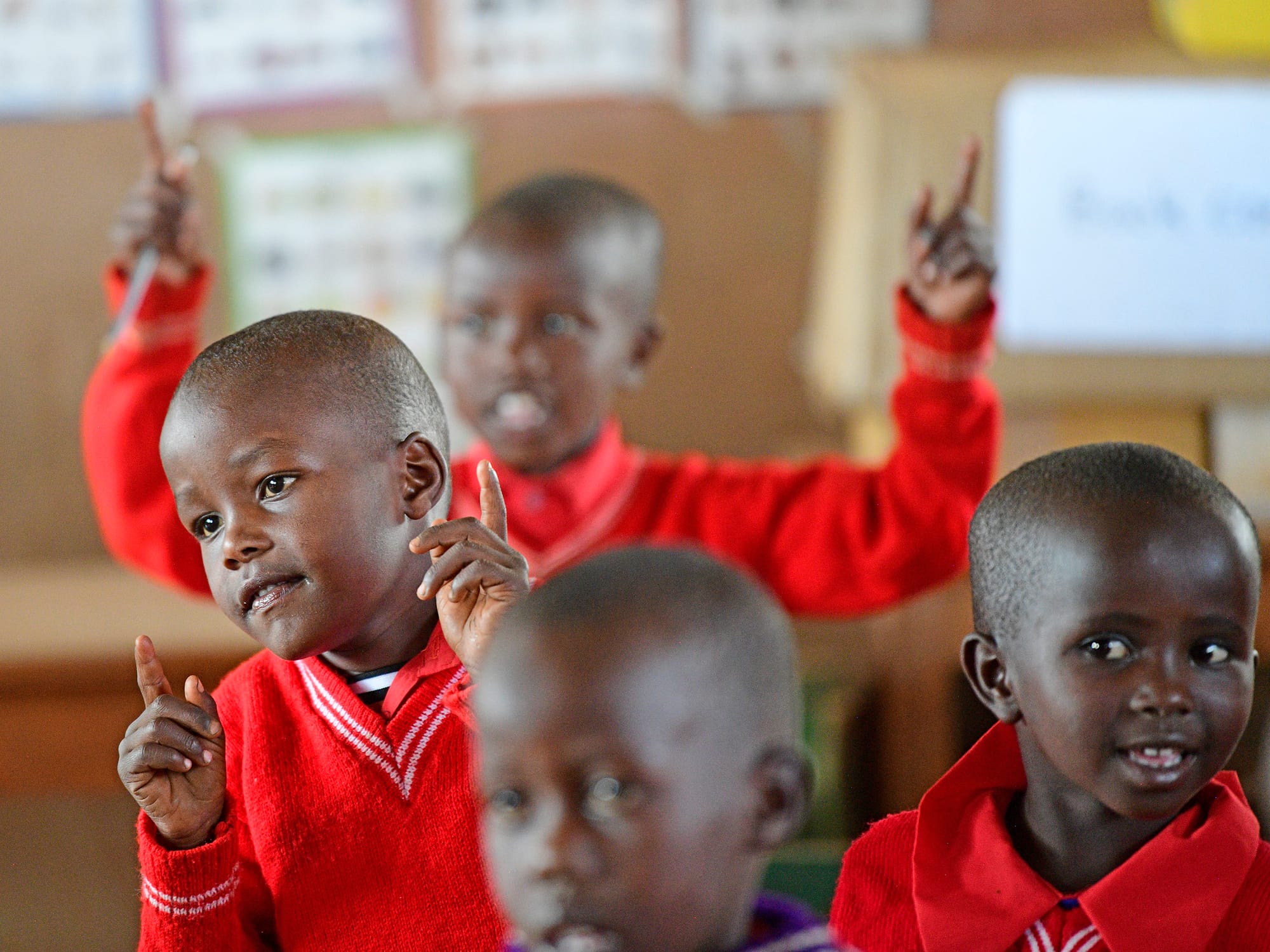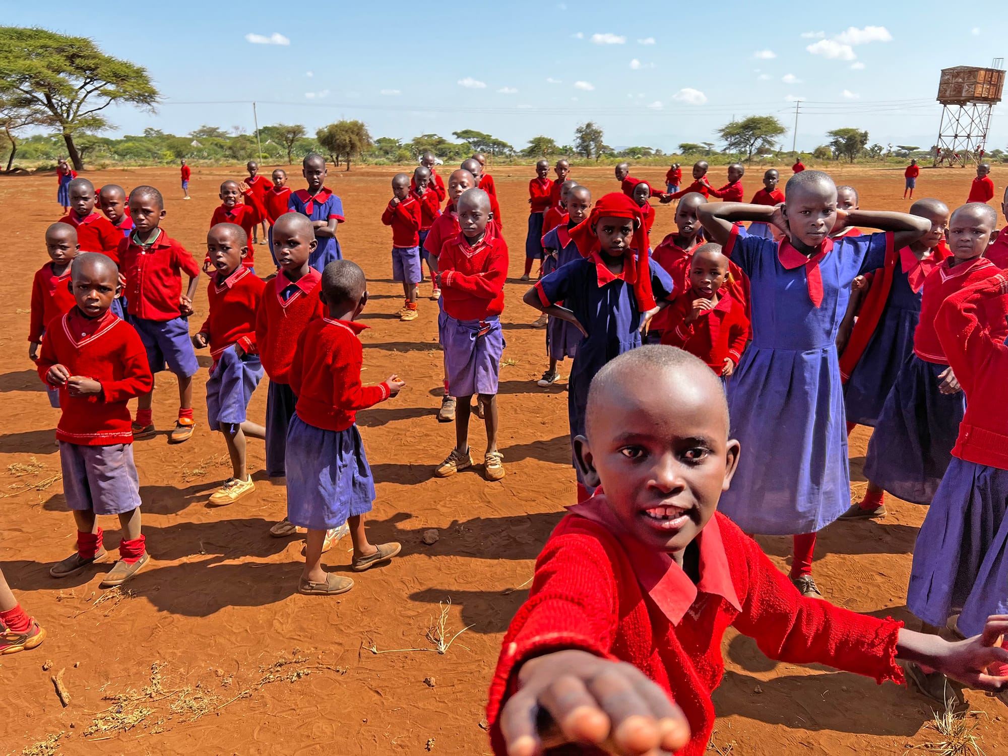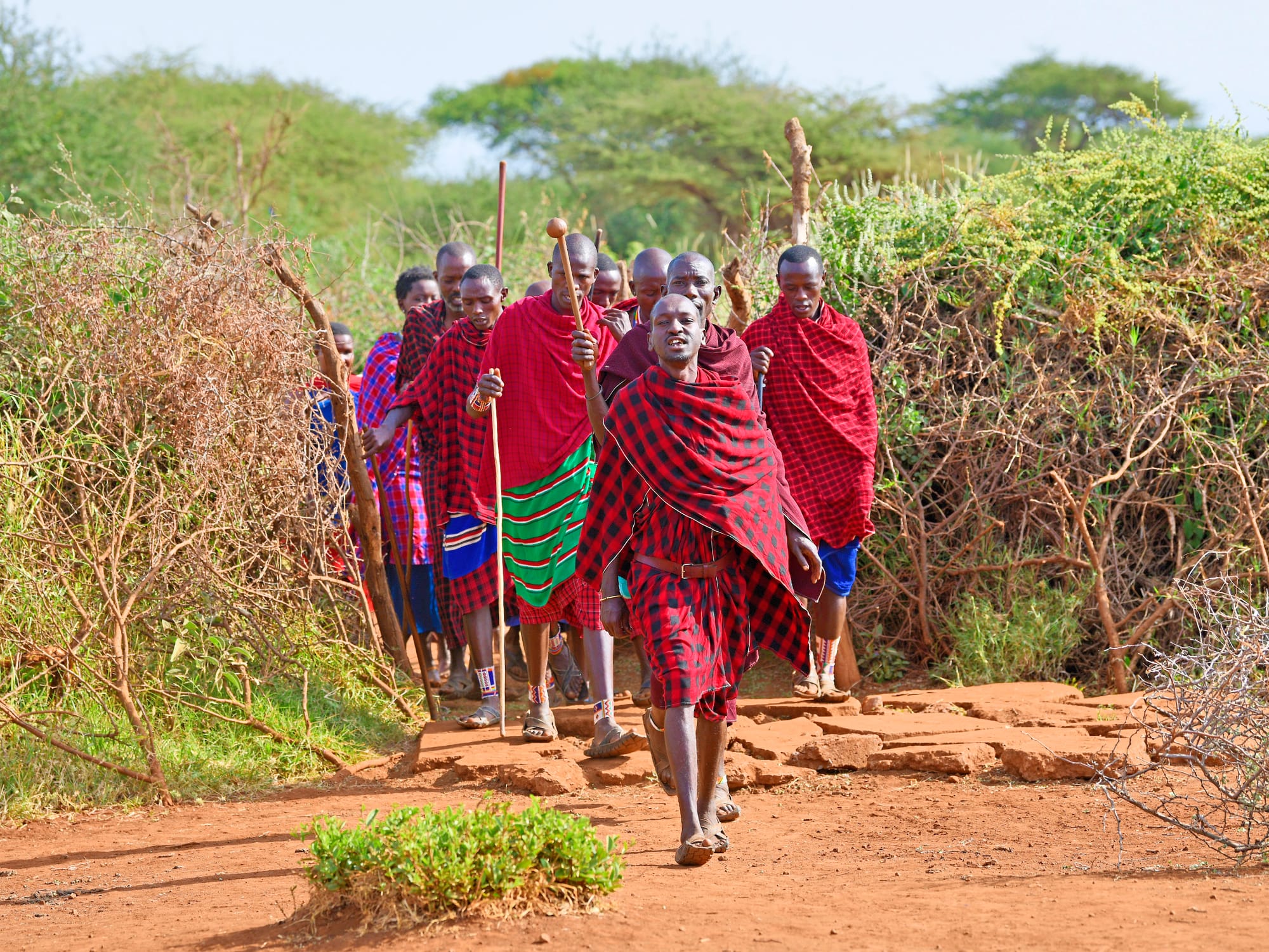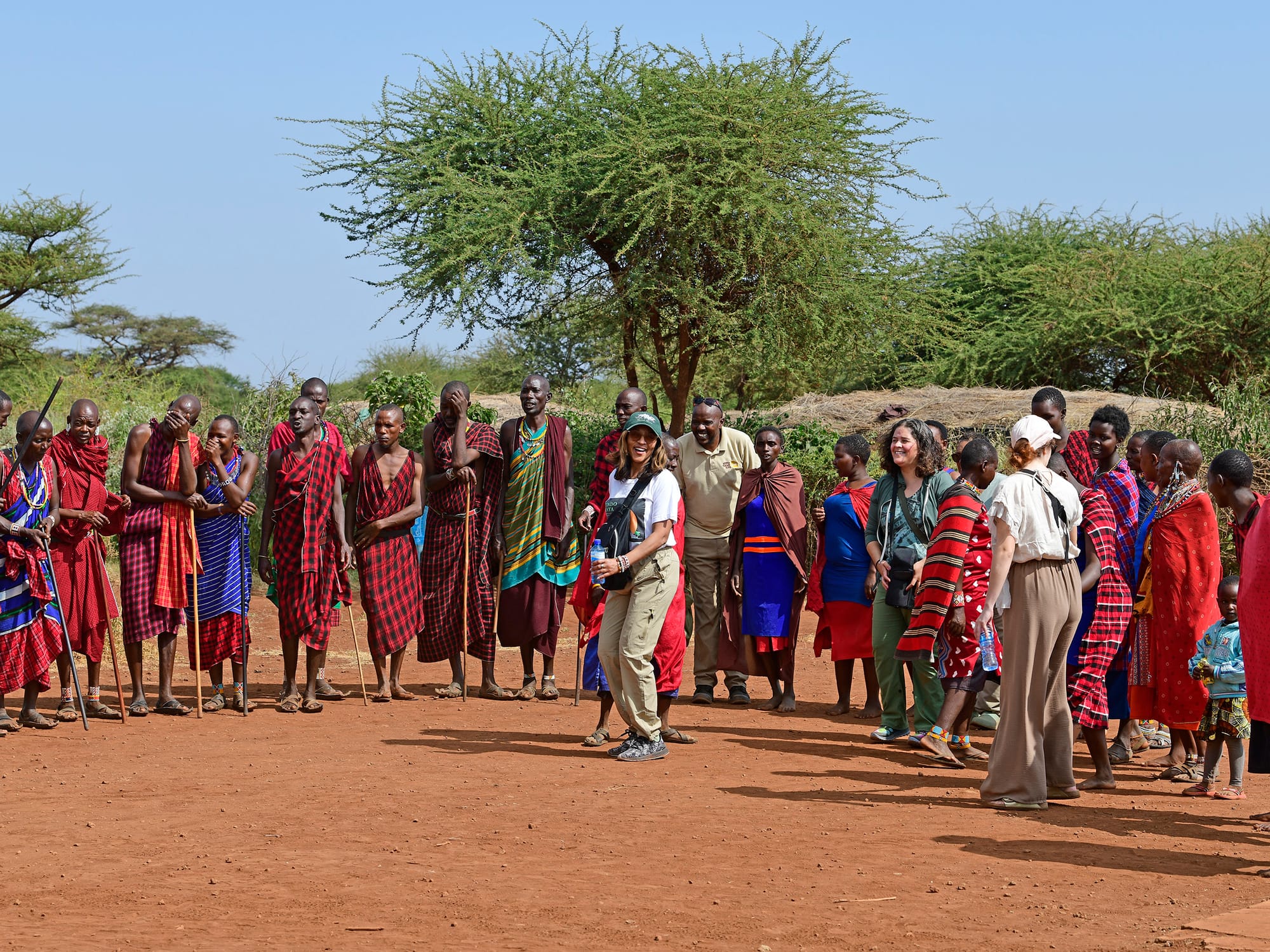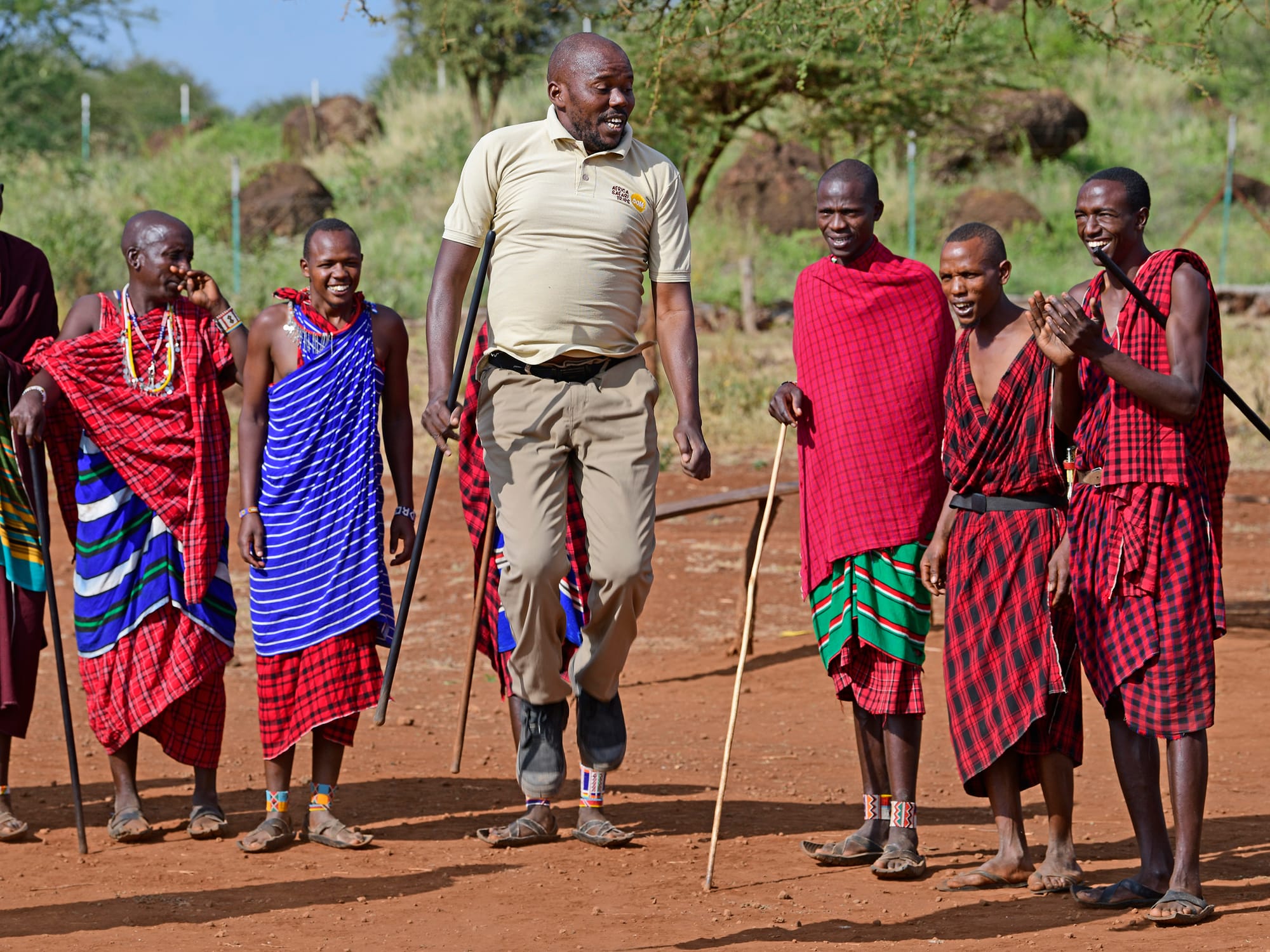 The traditional Masaai greeting for visitors involves singing and dancing. The men do a high-jumping contest when they dance.