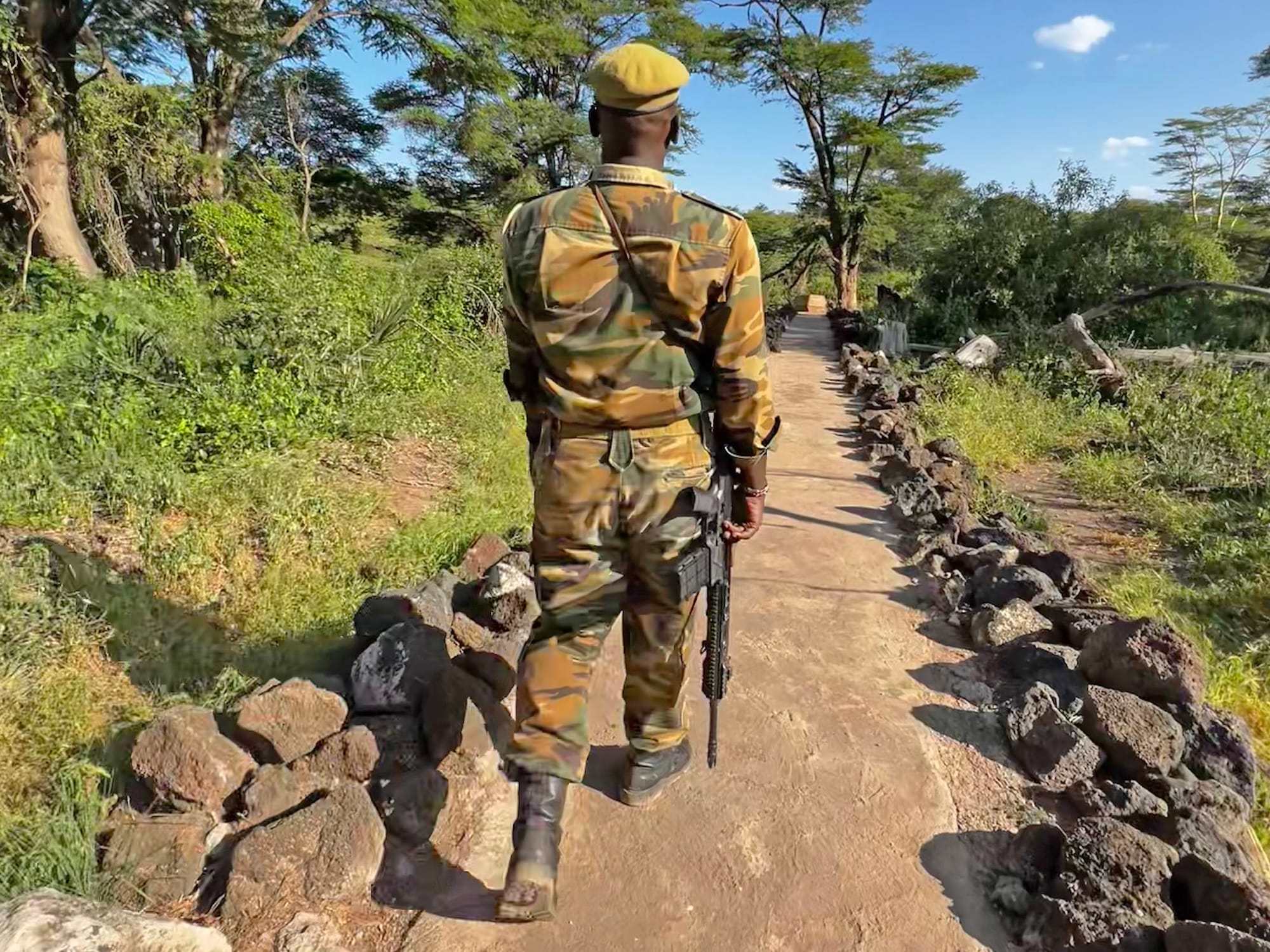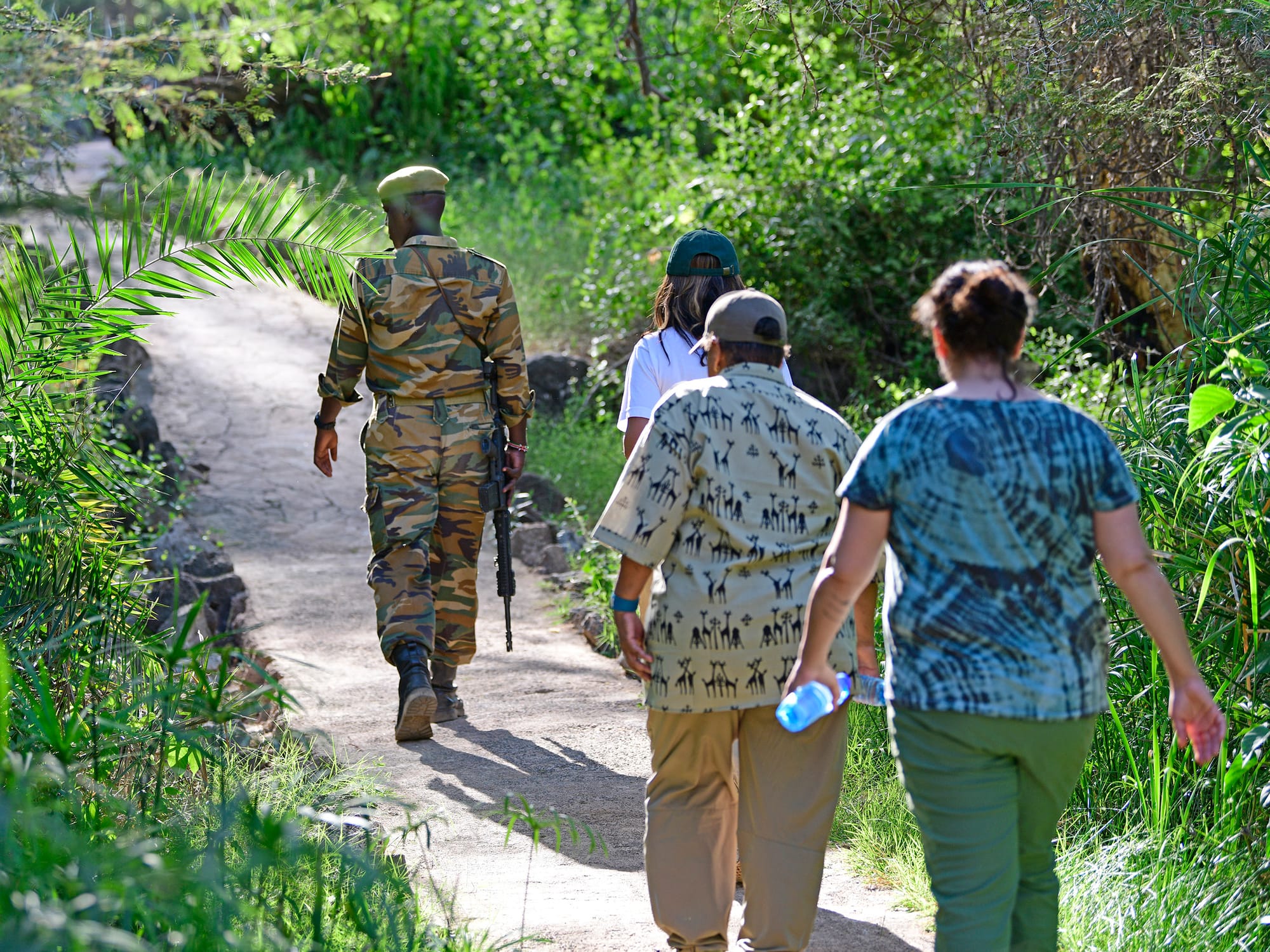 A park ranger led us on a 20-minute walk at Mzima Springs. A few years ago, a ranger was killed by a buffalo here, so since then they've required that people be accompanied by a ranger at all times. There are also hippos and crocodiles in this area. I was impressed with how the ranger had his hand in the exact same position on his gun throughout our entire walk.