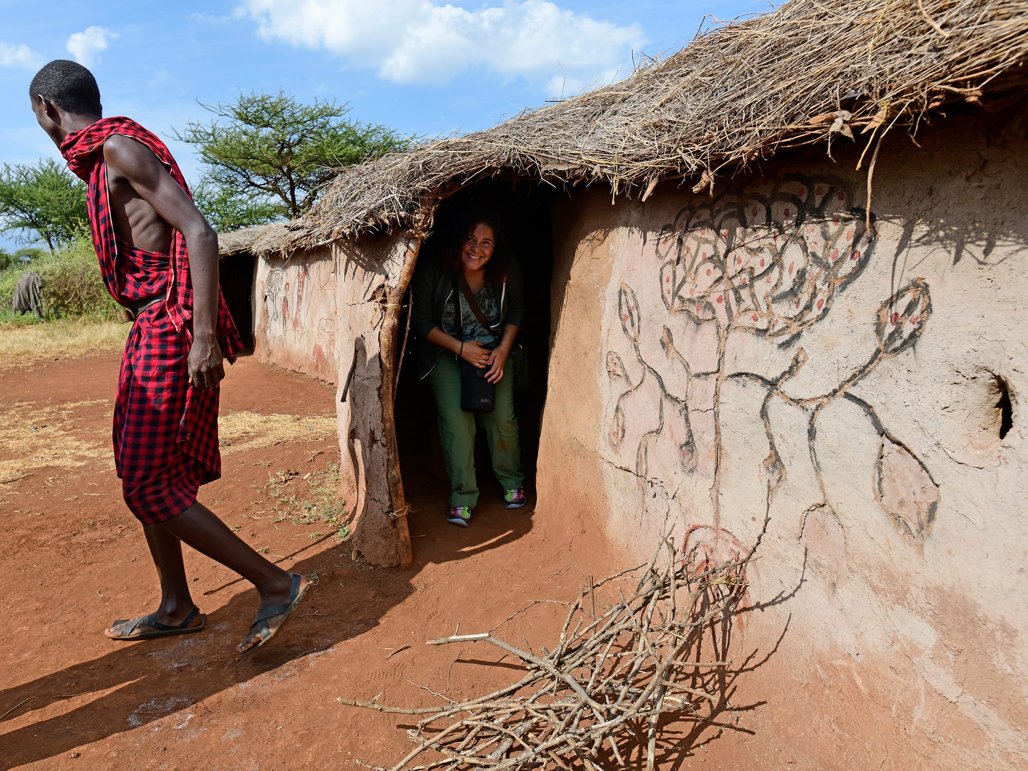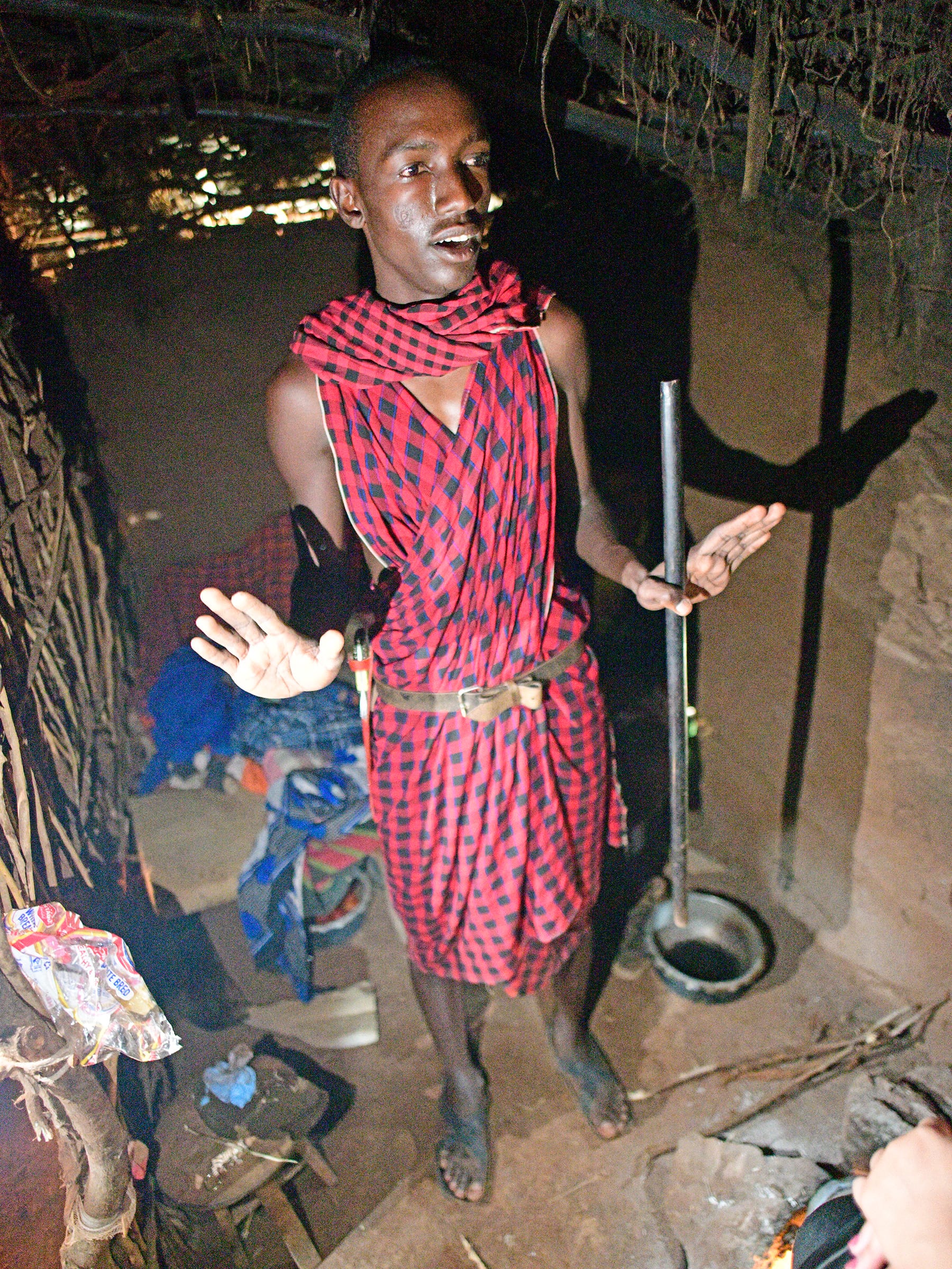Next we toured this hut, which is home to a young Masaai couple and their five children. The huts are made from a mixture of cow dung and ash.