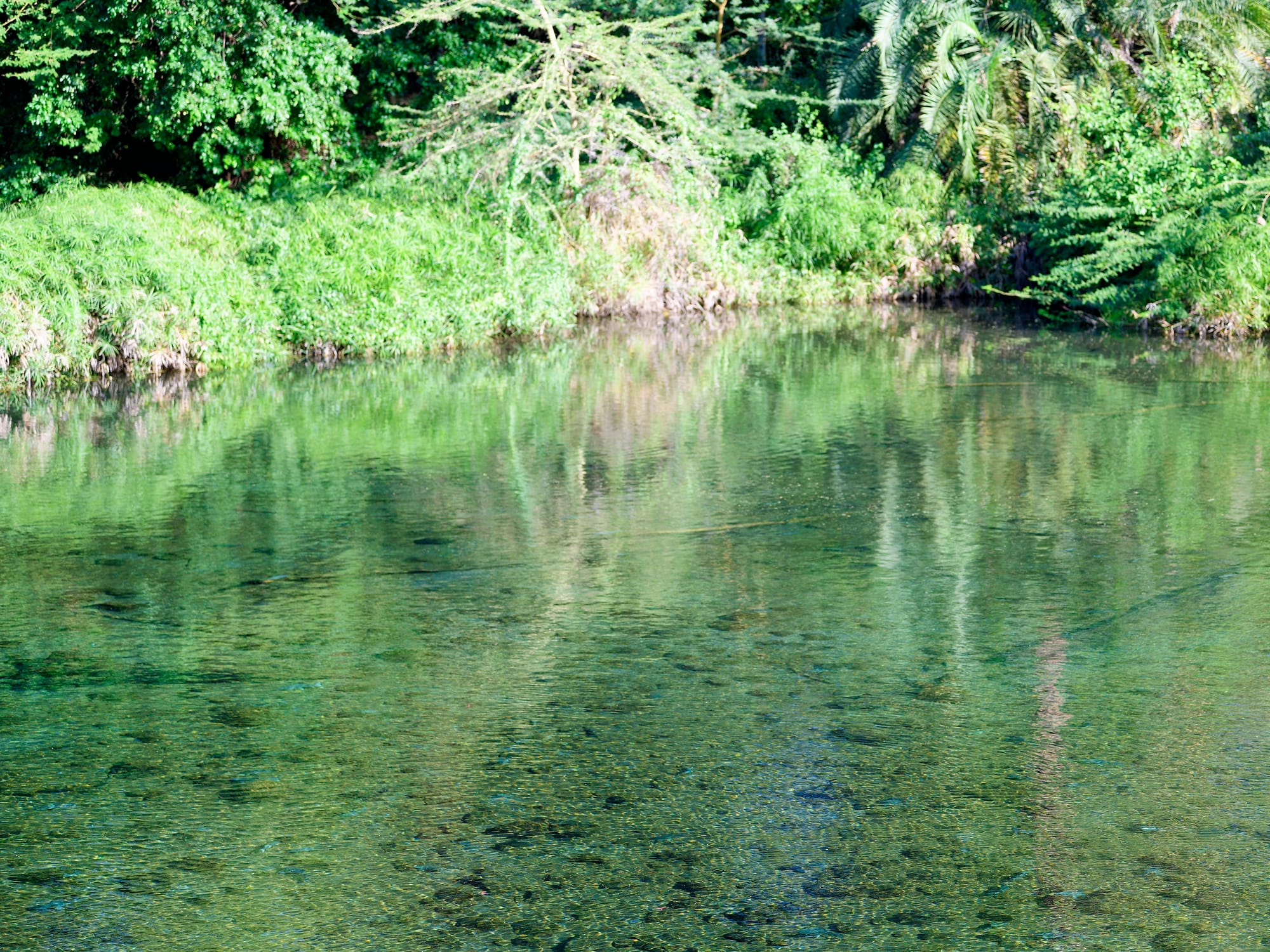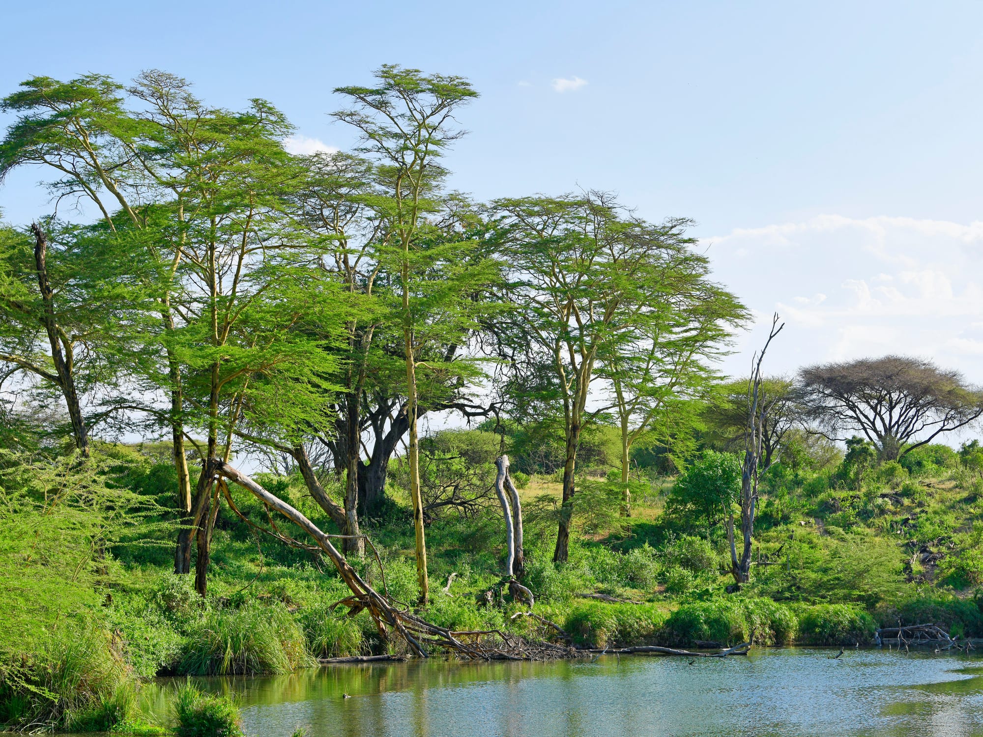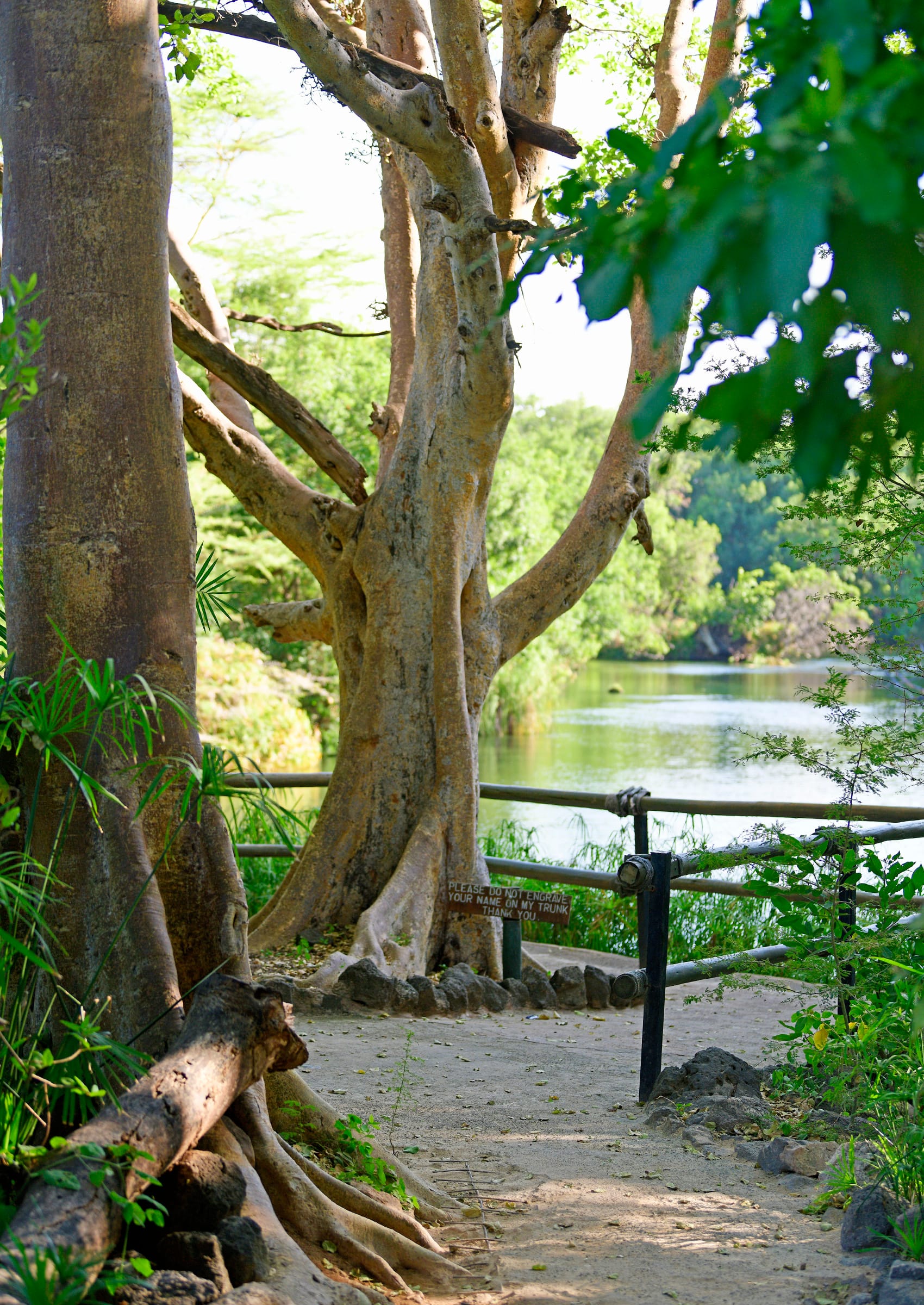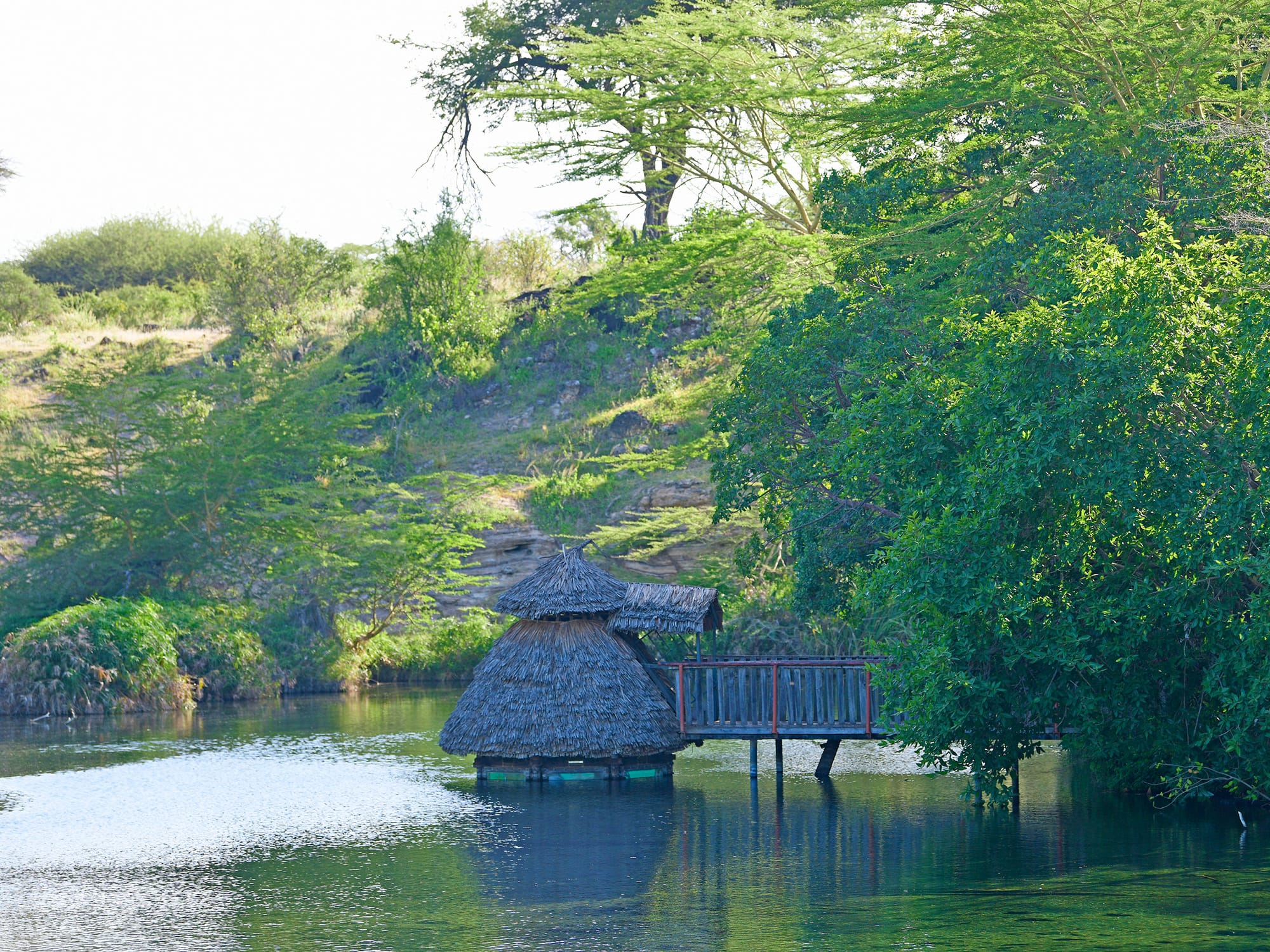 At this time of year, Mzima Springs is a lush green area in the midst of dry dusty areas.