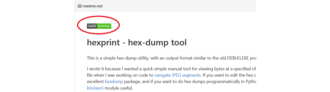 If you look around at repos that use Travis-CI for build and test automation, you’ll often see a badge in the README.md file that shows the status of the most recent tests. For example:
